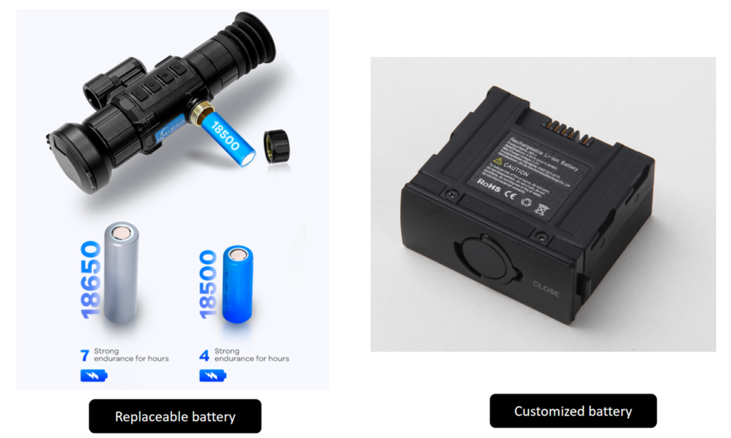 We use high-discharge lithium cells. Expect 5–7 hours of continuous use, currently only one model named LY series ‘s battery can work at -30 degree.